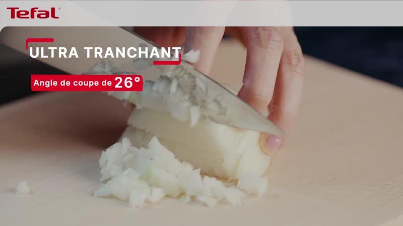Affuté par la glace, taillé pour durer Des performances de coupe qui durent jusqu'à 2 fois plus longtemps que les autres gammes standards de Tefal Lame de haute qualité en acier inoxydable allemand pour une résistance et des performances exceptionnelles au fil du temps, garantie 10 ans contre la casse Un angle de coupe ultra-tranchant de 26° pour des coupes nettes et précises Une coupe parfaite à chaque fois, qu'il s'agisse de couper des légumes de taille moyenne avec le couteau utilitaire ou des ananas en dés avec le couteau de chef Un contrôle total grâce à un design parfaitement équilibré, une garde et une poignée ergonomique Bien qu'ils puissent être lavés au lave-vaisselle, nous vous recommandons de nettoyer vos couteaux à la main afin d'éviter les chocs sur la lame