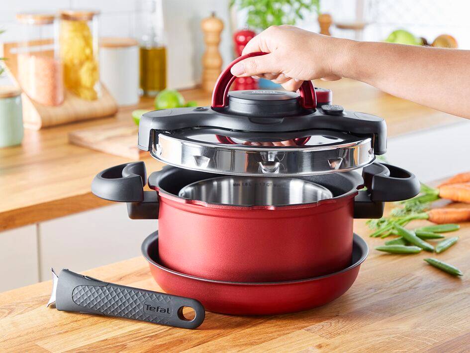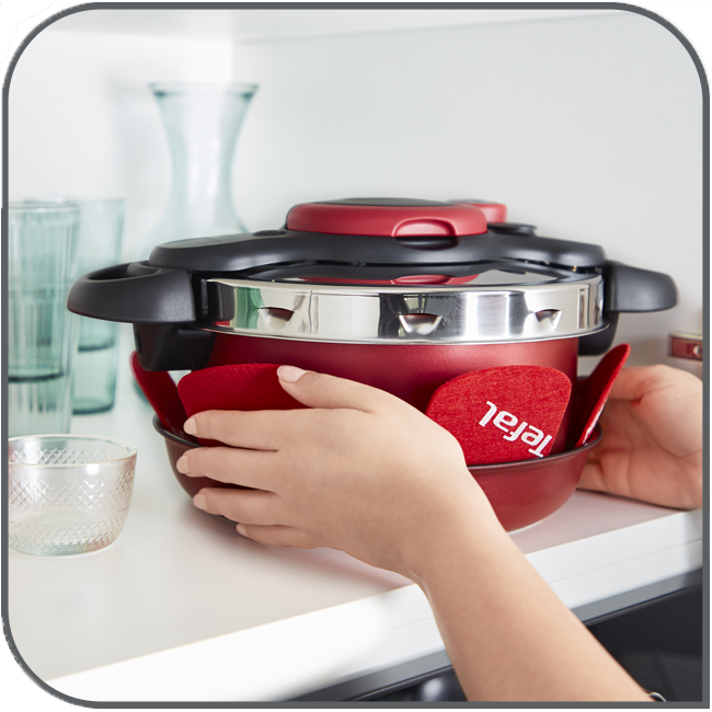 Une batterie de cuisine polyvalente comprenant une large gamme de poêles et casseroles pour répondre à tous vos besoins culinaires Un format compact et un rangement intelligent dans un seul faitout Une cuisson deux fois plus rapide (par rapport à un faitout Tefal standard) Une cuisine saine qui préserve jusqu'à 80 % de la vitamine C des ingrédients (par rapport à un faitout Tefal standard) Un revêtement antiadhésif pour un nettoyage facile et des performances durables Système de sécurité ingénieux à 5 points de verrouillage pour une tranquillité d'esprit totale