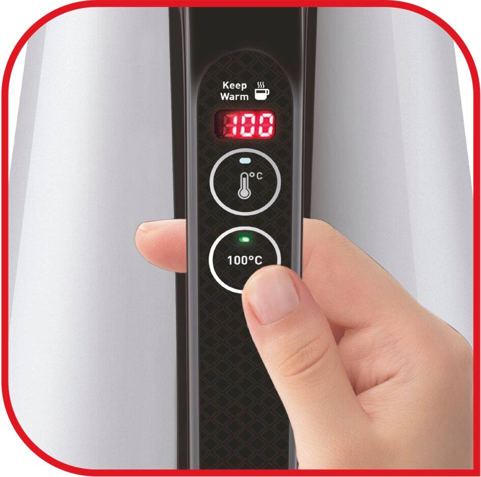 Double paroi protectrice : extérieur en aluminium et intérieur en inox 8 niveaux de température pour tous les types de thé Contrôle facile via l'écran digital situé sur la poignée Fonction maintien au chaud 60 minutes Capacité 1,5L Résistance cachée et intérieur tout inox pour une ébullition rapide et un entretien facilité de l'intérieur de la bouilloire Graduations intérieures en relief Grande ouverture du couvercle automatique facilitant le nettoyage et le remplissage de la bouilloire Base pivotante 360° pour une parfaite stabilité de la bouilloire sans fil Puissance : 1 800 W