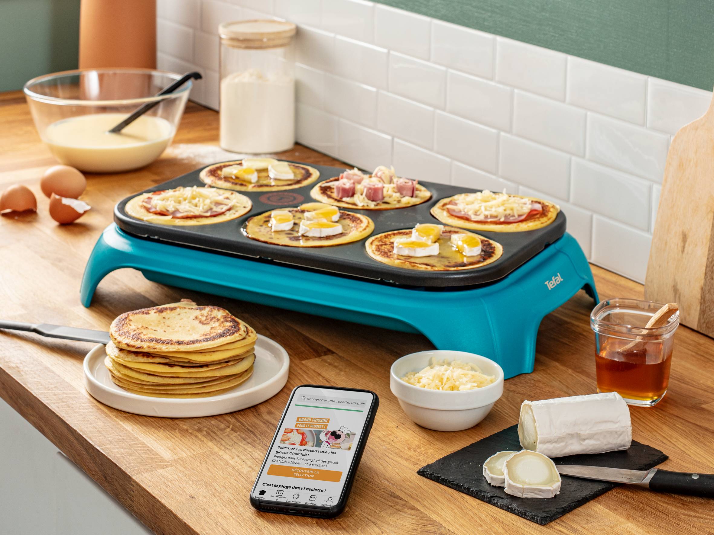 Appareil à crêpes et pancakes pour 6 personnes maximum ; idéal pour de savoureux moments de partage en famille et entre amis Plaque dotée d’un revêtement anti-adhésif pour une durabilité et une résistance accrues Rangement intelligent intégré sous l’appareil pour conserver facilement les accessoires au même endroit Accès illimité à des recettes grâce à un abonnement d’un mois gratuit à l’application ChefClub® Fabrication en Haute-Savoie, selon une expertise et un savoir-faire traditionnels Indicateur de chauffe Thermo-Spot® qui devient rouge lorsqu’il est temps de lancer la cuisson Engagement de réparabilité 15 ans au juste prix grâce à notre réseau de 6200 réparateurs dans le monde