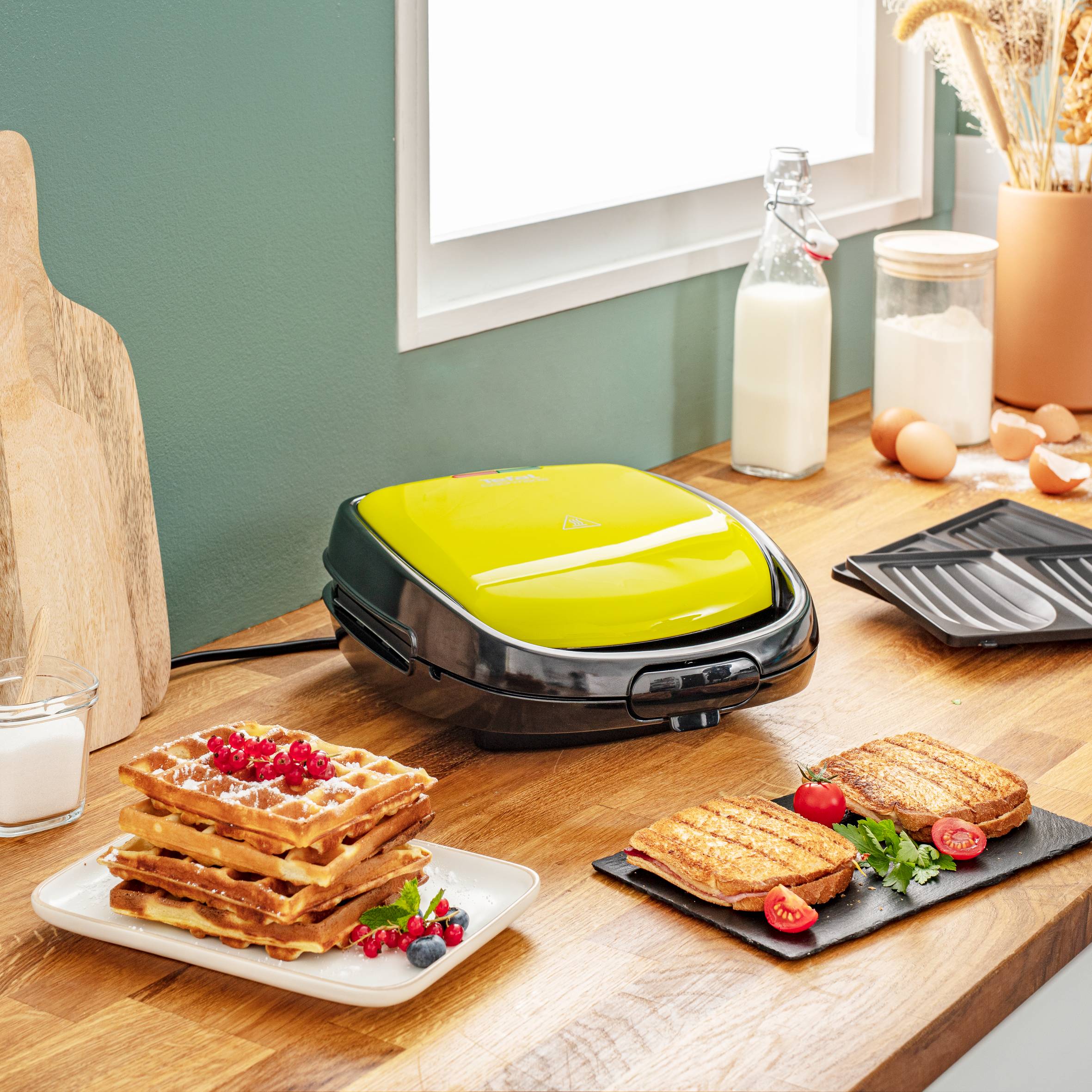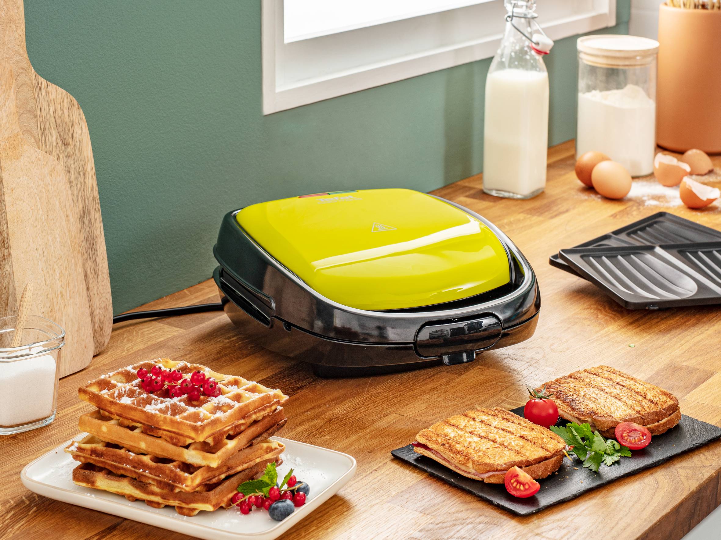 Appareil multifonction avec 2 jeux de plaques amovibles, pour de délicieuses gaufres maison et des sandwiches parfaitement grillés Plaques compatibles lave-vaisselle pour un nettoyage sans effort Témoins lumineux pratiques qui indiquent à quel moment les plaques sont suffisamment chaudes pour lancer la cuisson Plaques dotées d’un revêtement anti-adhésif pour un retrait facile des aliments et des résultats parfaits Une poignée isolante dotée d’un clip de verrouillage pour une sécurité maximale et une sérénité totale Réparabilité garantie pendant 15 ans pour contribuer à la protection de l’environnement et à la réduction des déchets