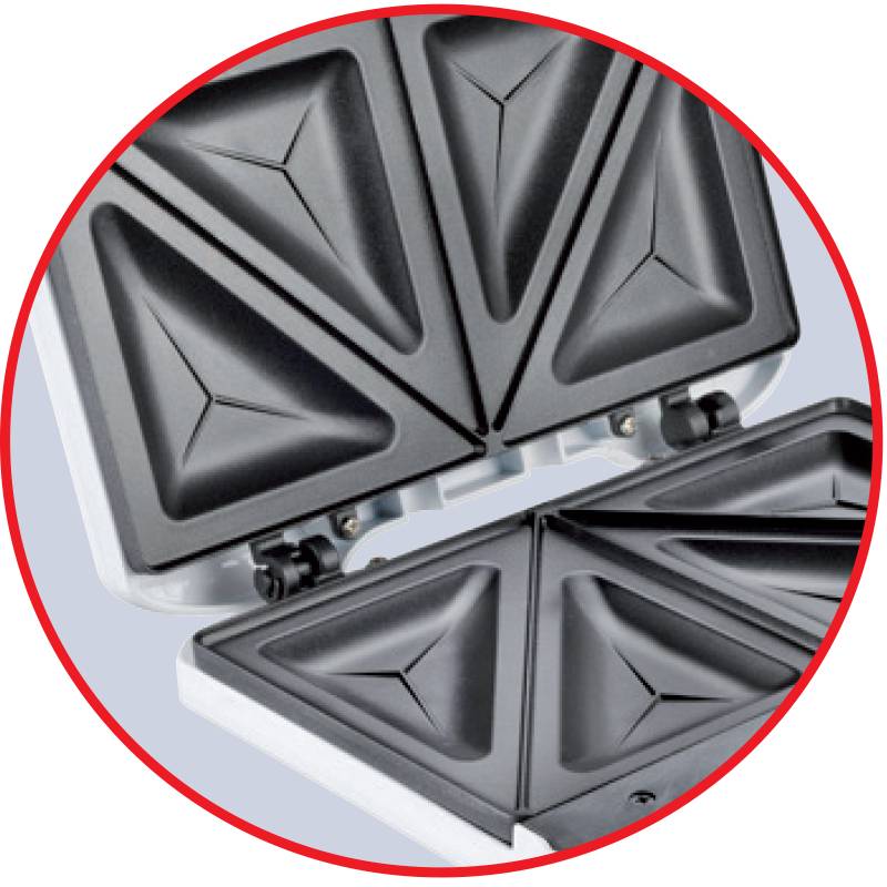 Découvrez la simplicité de cuisiner de délicieux et variés sandwichs avec cet appareil à croque-monsieurs. Grâce à ces plaques antiadhésives, le nettoyage et maintenant plus facile pour vous. Grâce à son rangement vertical et à son rangement spécial cordon, c'est le produit idéal : petit et pratique, c'est facile de le ranger dans votre cuisine. Son voyant lumineux de marche / arrêt et de fin de préchauffage vous aide à réussir une cuisson parfaite, cet appareil à croque-monsieurs est également sécurisé grâce à son loquet de fermeture et sa poignée isolée thermiquement. Sécurisé, simple et facile d'utilisation, cet appareil à sandwich vous fera apprécier tous vos sandwichs !