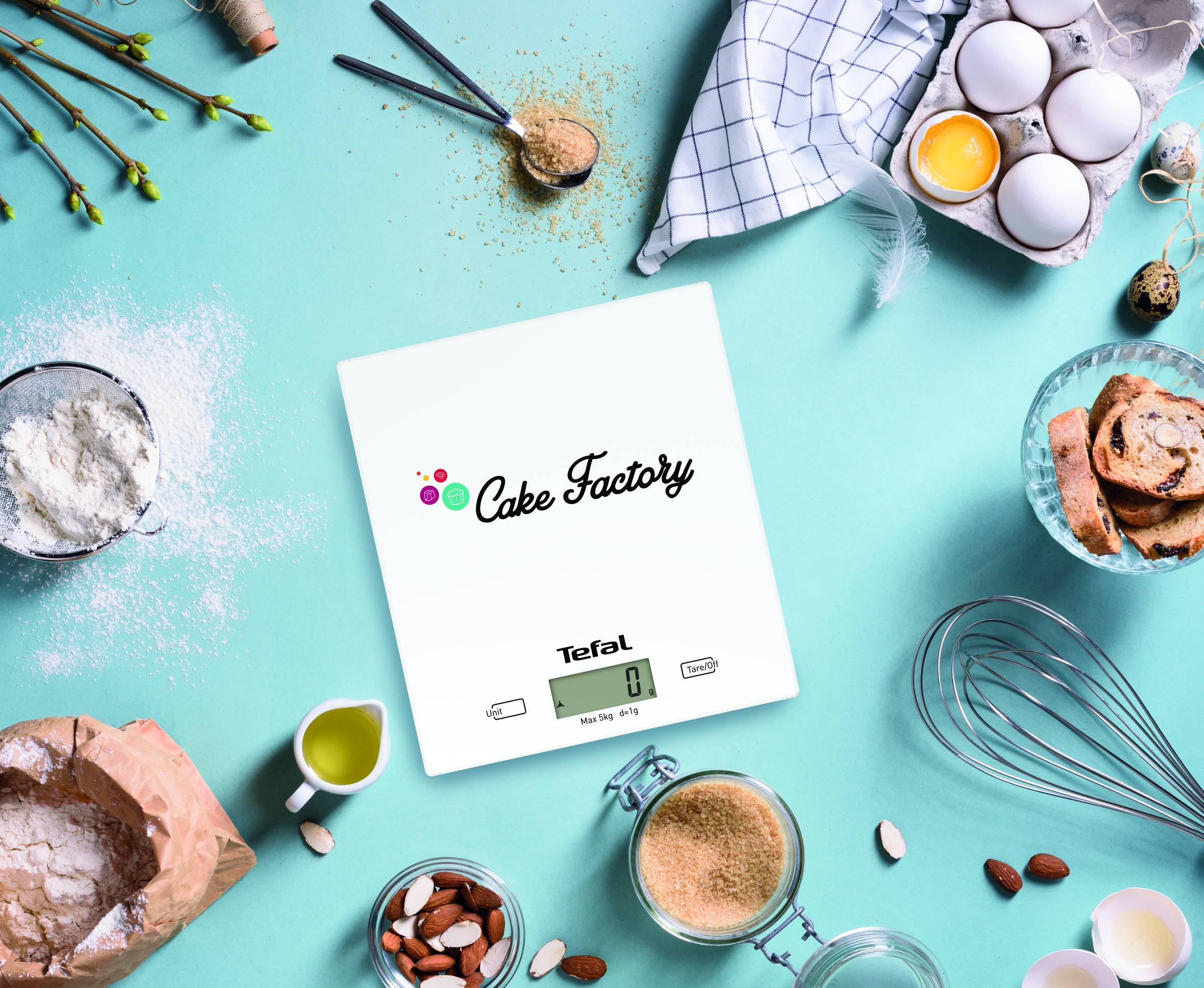 Avec Cake Factory, la créativité est de mise ! Avec ses 5 programmes automatiques intelligents avec contrôle de la température et un mode manuel, fini l’improvisation et place à l’inspiration en famille. Cake Factory contient tout ce dont vous avez besoin pour vous lancer : deux moules en silicone PROFLEX,un livre de recettes et de démarrage rapide pour des résultats parfaits à portée de main ! Retrouvez plus de 1 500 recettes gratuitement sur l'application ! EN EXCLUSIVITÉ : Une balance de cuisine Tefal Essential de la marque Cake Factory vous est offerte.