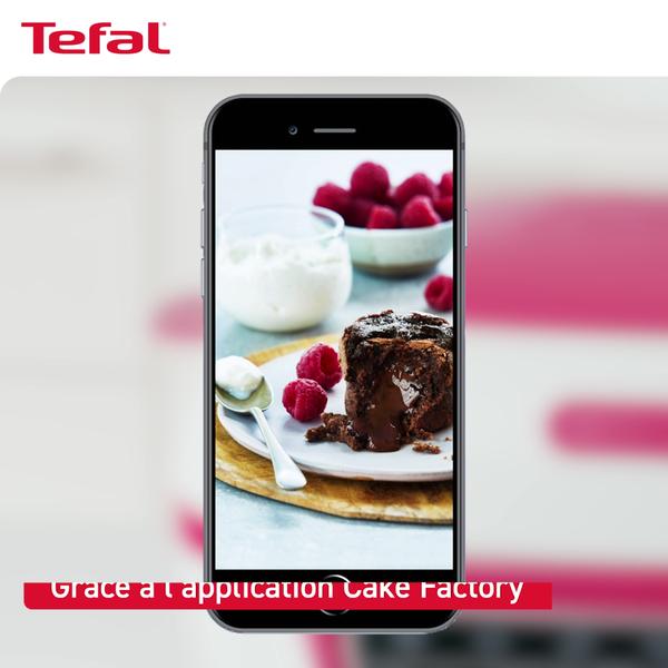 Ne râtez plus vos gâteaux, avec Cake Factory Delices, c'est la garantie d'un résultat parfait de toutes vos pâtisseries : brownies, fondants, cannelés, meringues, muffins, cupcakes, madeleines... tout devient possible ! Avec Cake factory Delices, vous pouvez même faire des crèmes desserts maison ! Une cuisson parfaite grâce à ses 5 programmes automatiques intelligents qui contrôlent avec précision le temps de cuisson et les variations de température. Profitez aussi du mode manuel, pour plus de libertés ! Fini les hésitations en cuisine. Cake Factory Delices contient tout ce dont vous avez besoin pour vous lancer : un support à moule CreaBake, deux lots de 6 moulesTefal CreaBake (muffins + mini cakes) plus un grand moule en aluminium antiadhésif inclus pour vos gâteaux à partager (Non inclus : grille pour moule CrsipyBake). Des centaines de recettes disponibles : un livre de recettes avec un guide de demarrage rapide inclus dans le pack et retrouvez également une multitudes de recettes dans l'application mobile gratuite Cake Factory, pour ne jamais être à cours d'idées !