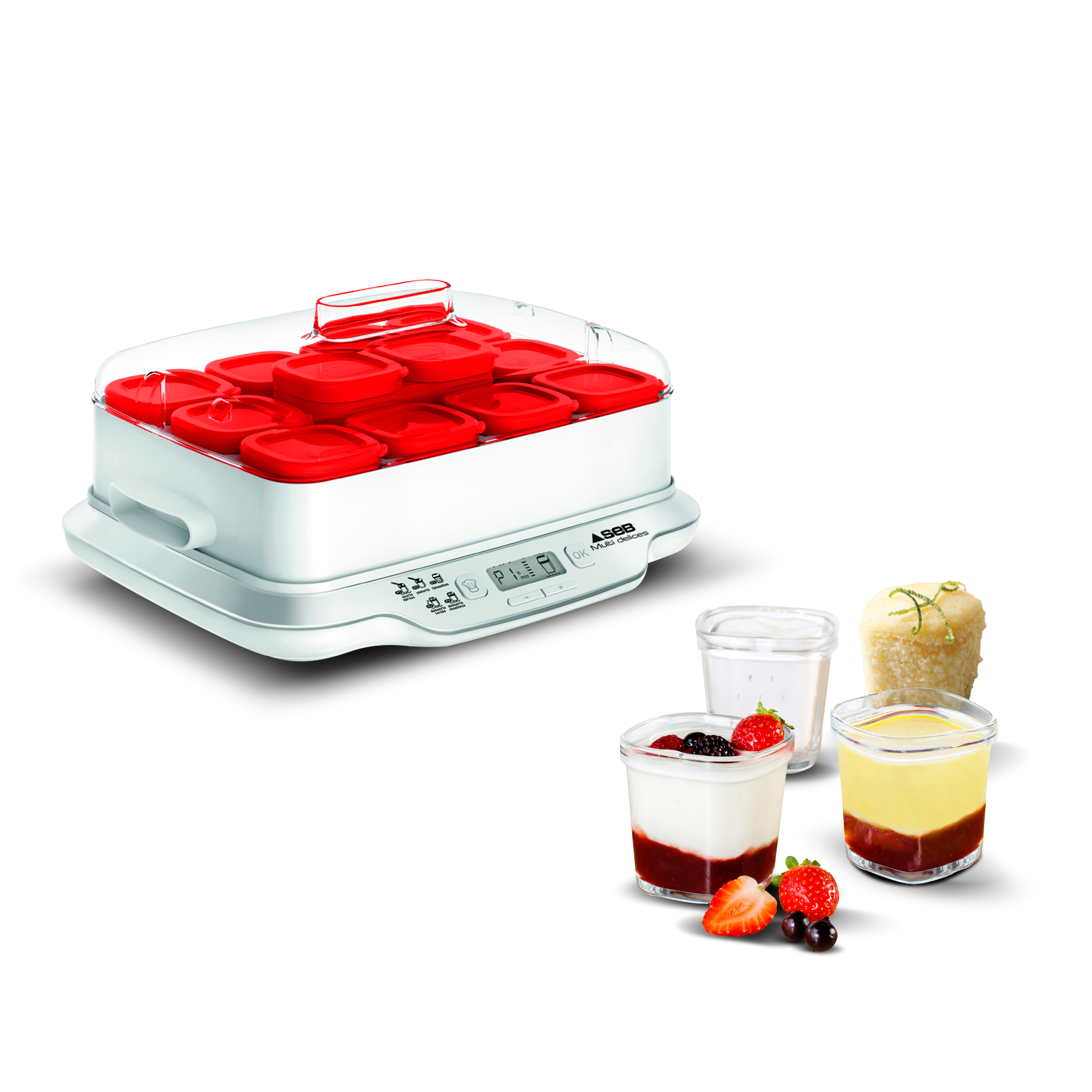 IDEALE POUR TOUTE LA FAMILLE : la yaourtière électrique 12 pots SEB Multi Delices Express vous permet de réaliser une infinité de desserts du bout des doigts ! GAGNEZ DU TEMPS : des yaourts maison parfaits en seulement 4h grâce au programme express P1 et de délicieux desserts en seulement 30-45 minutes POLYVALENT : 5 programmes pour des choix extrêmement variés de yaourts, desserts lactés, fromages blancs et desserts moelleux HAUTE PERFORMANCE : technologie vapeur avancée pour des résultats délicieux et une consistance exceptionnelle Engagement de réparabilité 15 ans au juste prix grâce à notre réseau de 6200 réparateurs dans le monde PERSONNALISÉ : le système d'égouttage exclusif breveté vous permet de réaliser votre fromage blanc maison personnalisé selon vos goûts ERGONOMIQUE : plateau amovible avec poignées qui vous facilitent son déplacement et son rangement EN TOUTE SECURITE : arrêt automatique, produit 100% sans BPA NETTOYAGE FACILE : les 12 pots de 140 ml, les couvercles, les égouttoirs et la louche sont compatibles lave-vaisselle. LIVRE DE RECETTES INCLUS : réalisez une grande variété de desserts facilement grâce à de délicieuses recettes pour toutes les occasions.