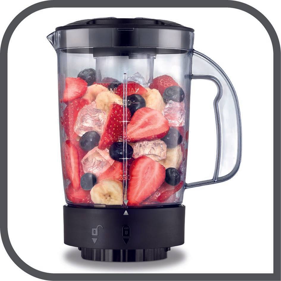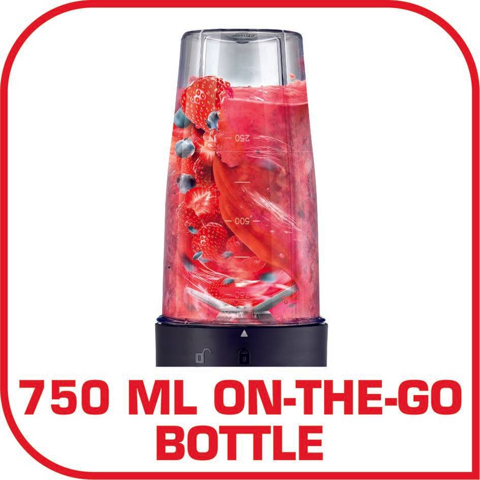 Avec Blend&go, emportez votre smoothie frais et sain partout! Doté d'un système de verrouillage intuitif à clipser, il est facile à utiliser et à nettoyer. Enfin, une gourde en plastique de 750 ml permet de boire partout votre smoothie préféré.