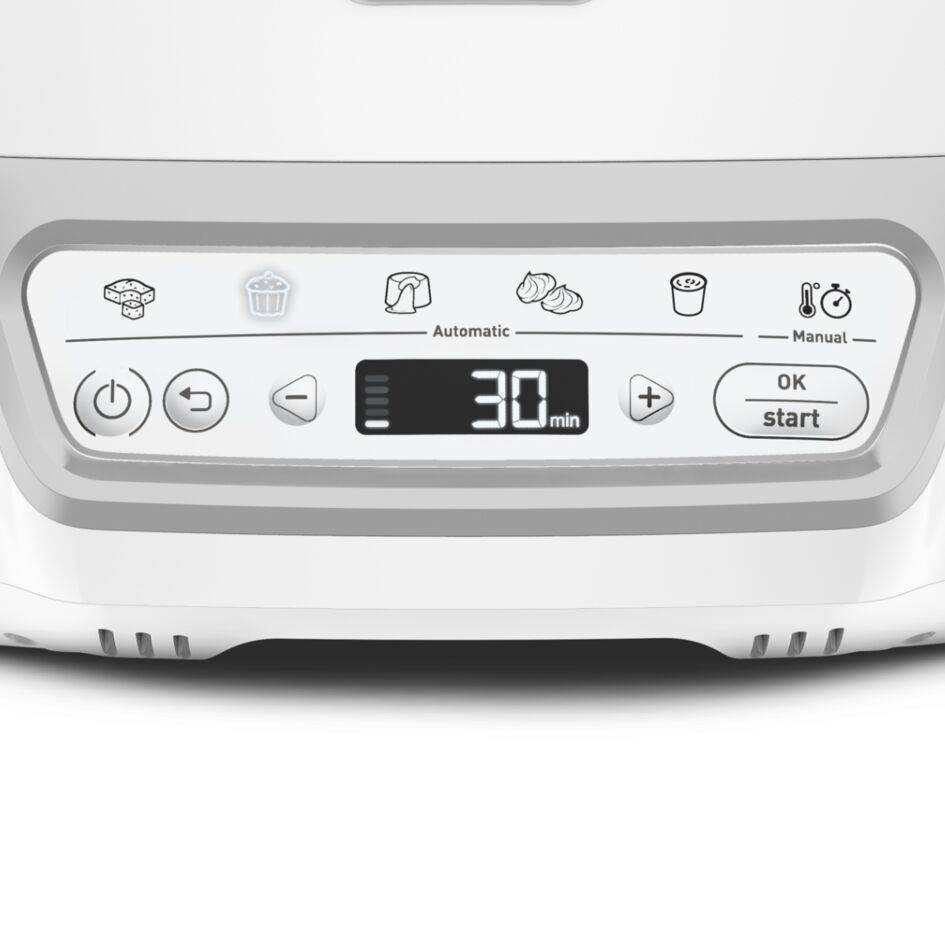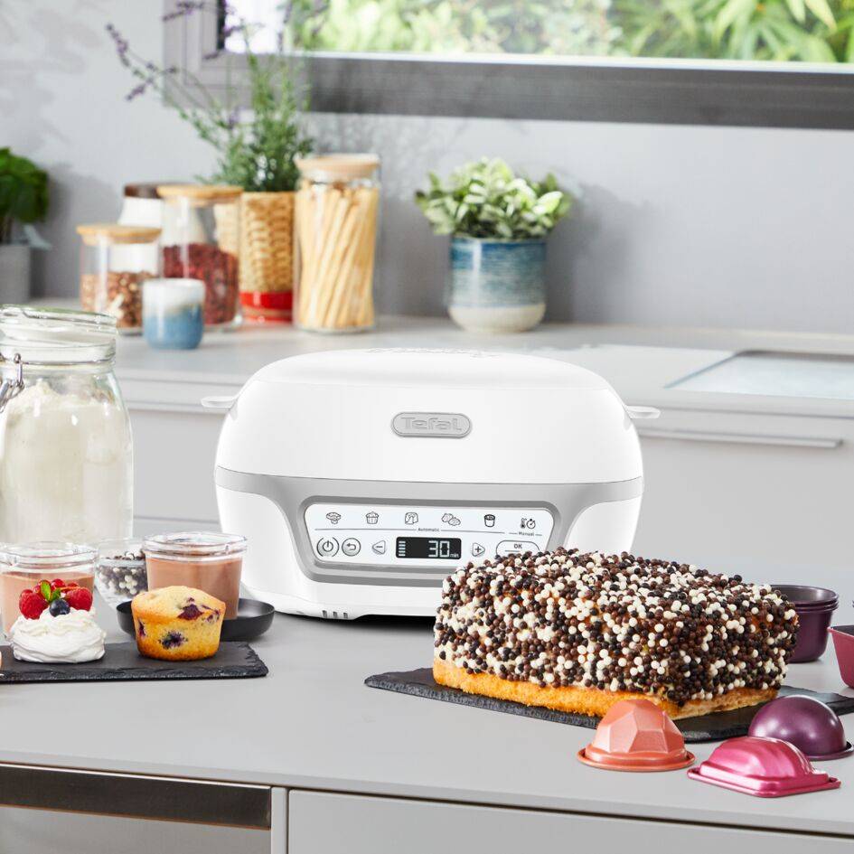 MACHINE A GATEAUX INTELLIGENTE : pour réussir tous vos gâteaux et pâtisseries et même vos crèmes dessert en toute simplicité et à tous les coups. RÉSULTATS PARFAITS : 5 programmes automatiques (Gâteau à partager, gâteaux individuels, cœurs coulants, meringues, crèmes desserts) + 1 mode manuel. PAS DE PRECHAUFFAGE NECESSAIRE : Pas de préchauffage et jusqu'à 50 % d'économie d'énergie par rapport aux fours traditionnels Classe énergétique A (tests effectués en 2024 sur des fondants au chocolat, des muffins, des yaourts et des gâteaux au citron). FACILE À UTILISER : interface intuitive. ACCESSOIRES INCLUS : un support à moules CreaBake, six moules CreaBake muffins, six moules CreaBake mini cake, six moules CreaBake madeleines, un grand moule à gâteau anti-adhésif, six verrines adaptées au programme "crème desserts" COMPATIBLE : avec tous les moules Téfal CreaBake (muffins, cannelés, madeleines, mini-cakes...). RESTEZ INSPIRE : application dédiée pour une multitude de recettes, des tutoriels et des astuces, dont plus de 350 recettes conçues sur mesure pour votre Cake Factory COMPACT : pour un rangement facile Engagement de réparabilité 15 ans au juste prix grâce à notre réseau de 6200 réparateurs dans le monde
