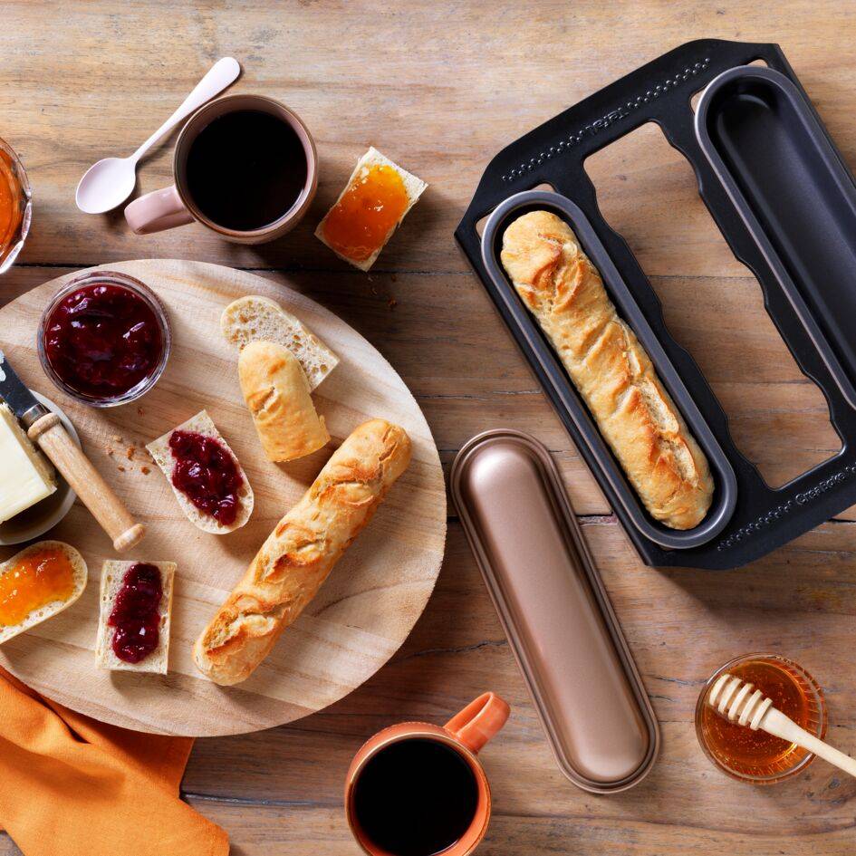 Placez jusqu'à trois moules à petite baguette dans le support Creabake à 9 emplacements - l'idéal pour préparer la bonne quantité selon vos besoins. Non compatible avec le support Creabake à 6 emplacements.