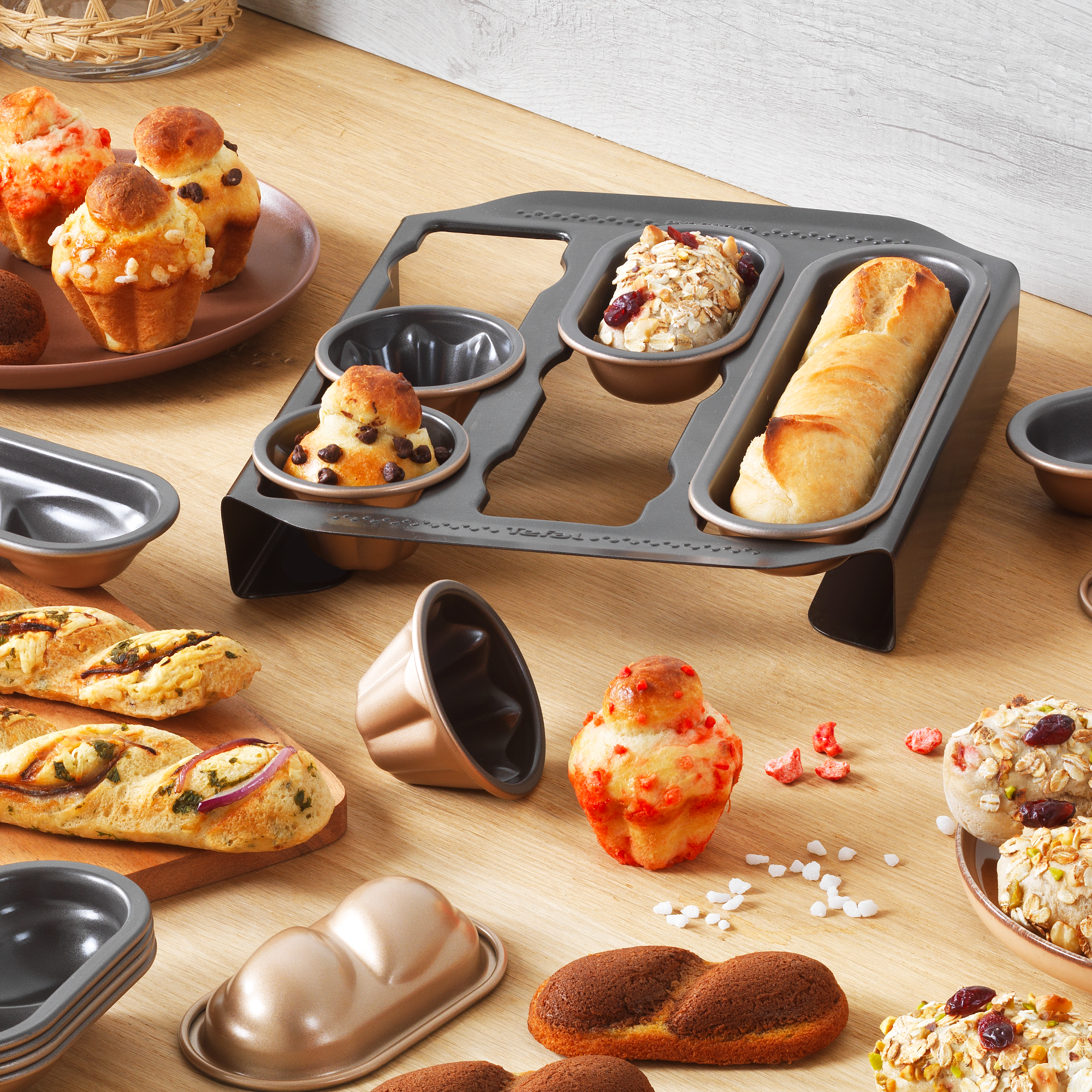 Découvrez une créativité illimitée grâce à un système de cuisson combinable conçu pour créer à l'infini ! Tefal Creabake combine un support de base et des moules amovibles de formes et de tailles différentes pour une expérience de cuisson dynamique et pratique de A à Z. Le revêtement antiadhésif offre un démoulage parfait et un nettoyage facile. Qu'il s'agisse de desserts dorés ou d'irrésistibles amuse-gueules, les moules interchangeables de Creabake offrent une variété de créations originales, sucrées ou salées.