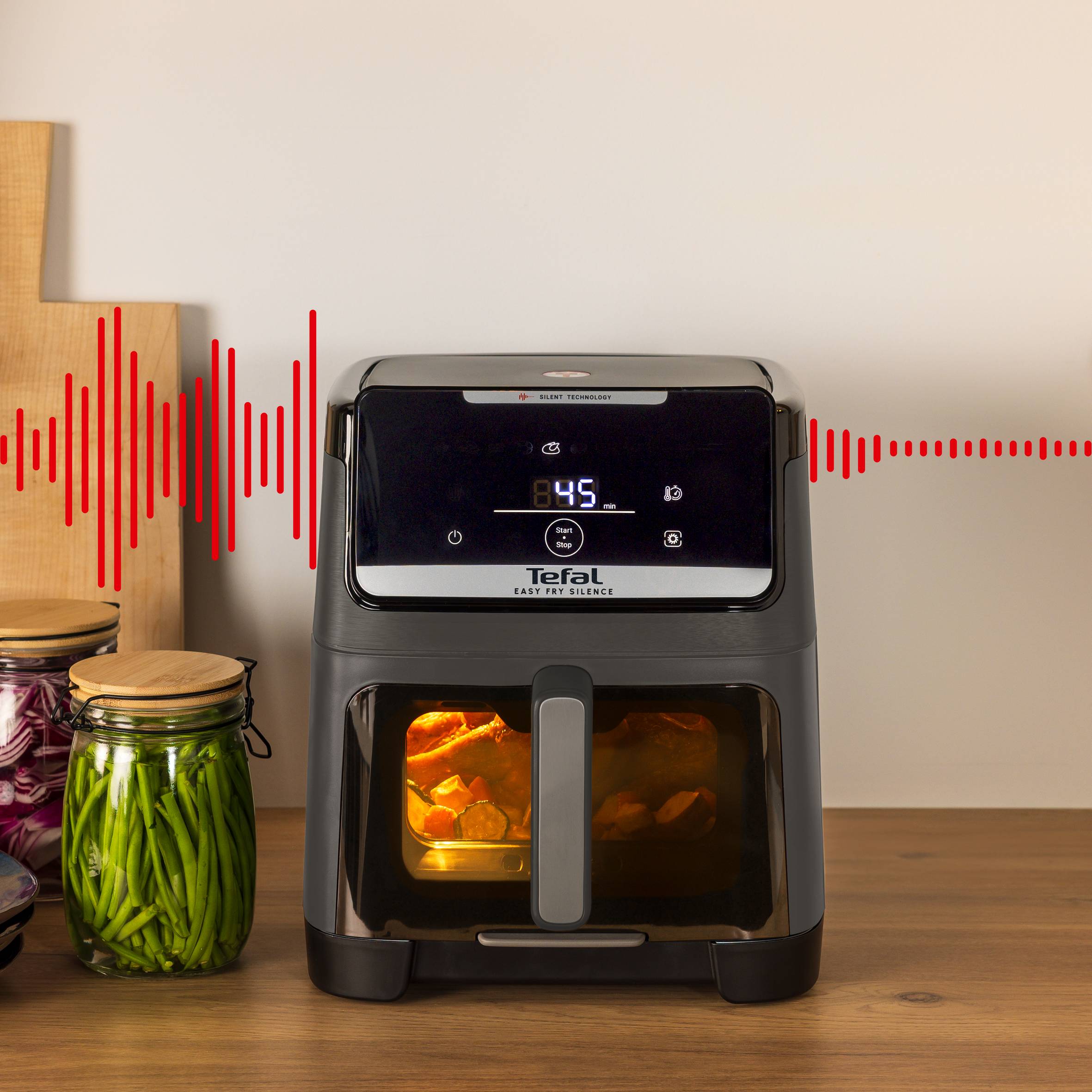 Découvrez Easy Fry Silence 7L, le air fryer XXL le plus silencieux assurant des résultats parfaits en toute sérénité. Ce air fryer grande capacité silencieux, offre un design pratique qui simplifie le nettoyage et la conservation des aliments une fois cuits. Par ailleurs, il offre une cuisson 51 % plus rapide avec 70 % d'énergie en moins qu'un four traditionnel.