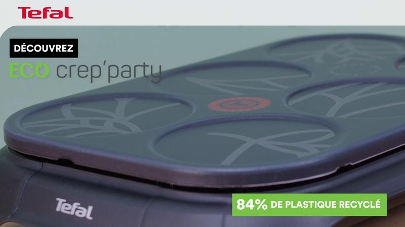 Chez Tefal, nous savons à quel point les ressources de notre planète sont précieuses. Nous savons également qu'un appareil plus durable n'aura pas besoin d'être remplacé. C'est pour ces raisons que nous avons conçu Eco Crep'Party, un appareil écologique du début à la fin : • Fabrication en France à partir de 84 % de plastique recyclé* • Réparabilité 15 ans, Garantie 2 ans • Produit recyclable à 95 %** • Emballage recyclable et sans plastique, fabriqué à partir de 90 % de fibres recyclées