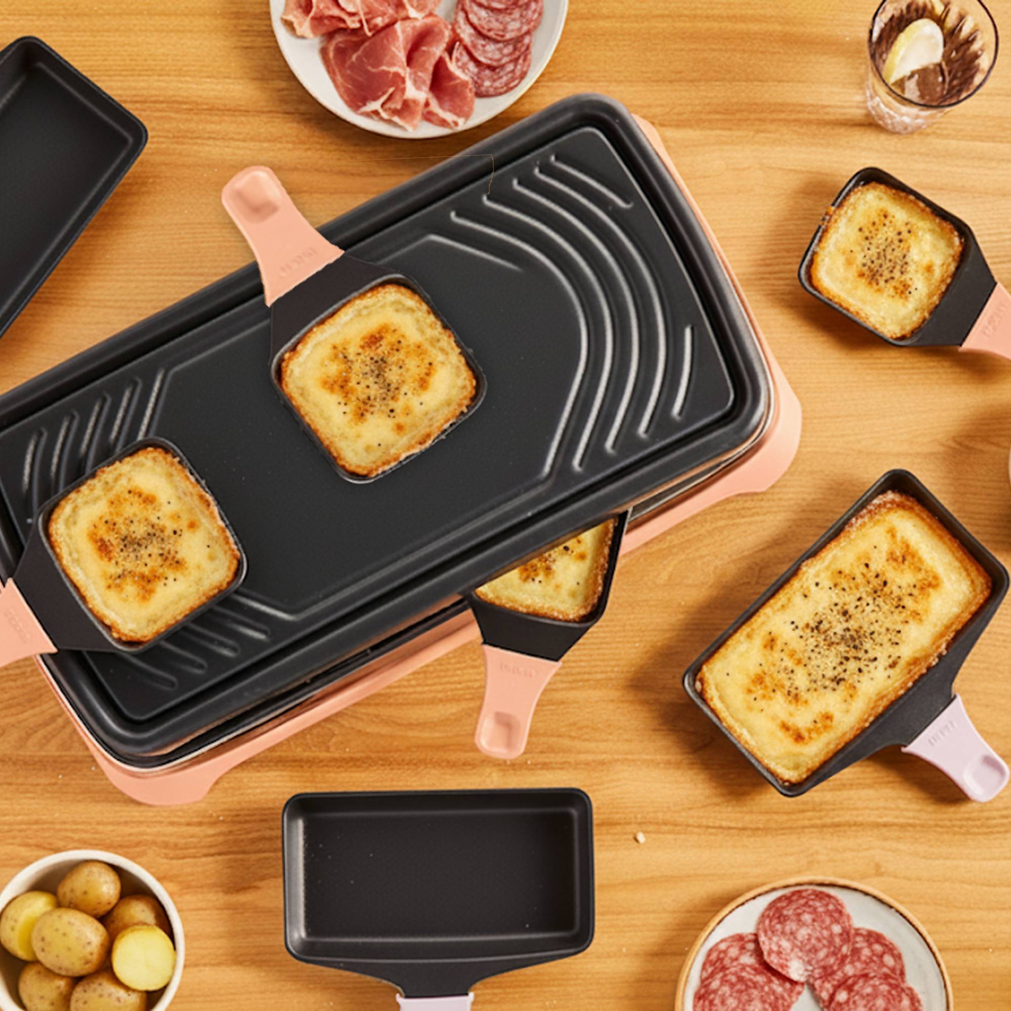 Votre kit Food & Co, Raclette multifonctions, Antiadhésif, 8 personnes, Poêlons classiques et XL