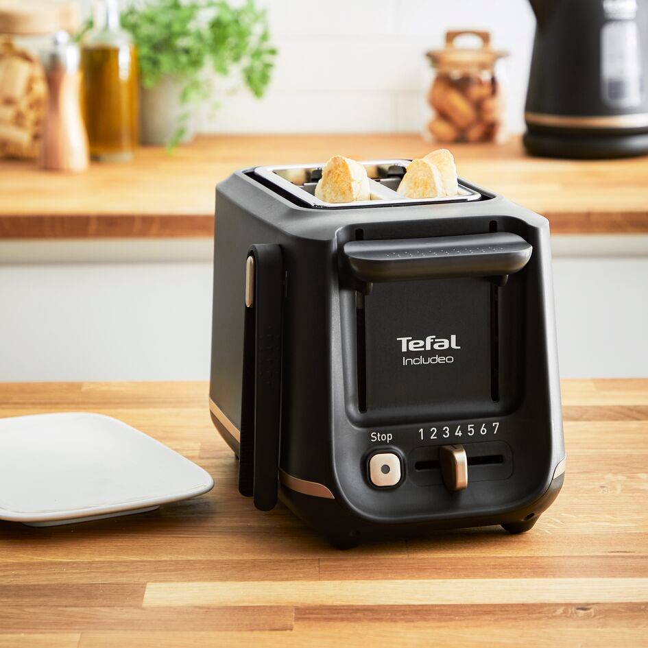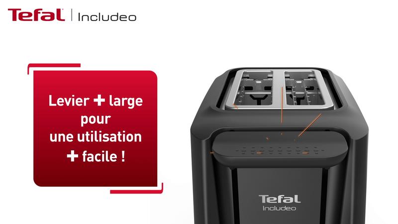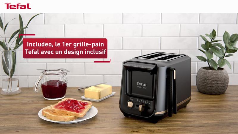 Conçue par nos designers et en collaboration avec les utilisateurs, la gamme Includeo de Tefal s'adapte aux besoins de tout le monde. Ce grille-pain au design ergonomique est équipé de fonctionnalités faciles à utiliser : équipé de 2 fentes extra-larges, de commandes très visibles et lisibles, d’une pince à toast dont une partie est en silicone, et d'un bouton de surélévation pour retirer vos tranches de pain en toute sécurité. Avec ses 7 niveaux de dorage pour un pain grillé juste comme vous aimez, ce grille-pain est idéal pour une utilisation quotidienne : parfait pour les pains tranchés, la baguette ou même la brioche !
