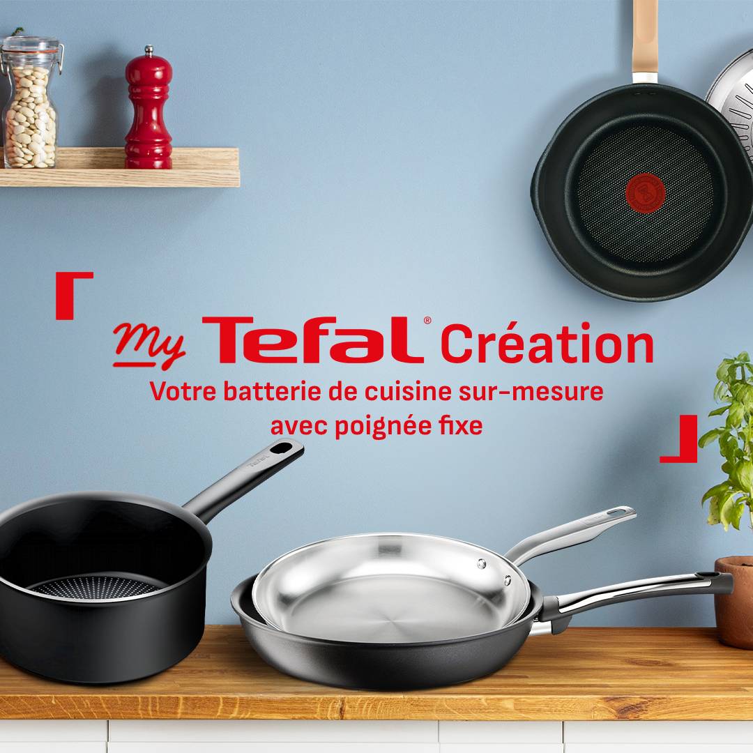 My Tefal Creation Mixez les formats, les revêtements et les tailles et composez votre batterie de cuisine sur-mesure.