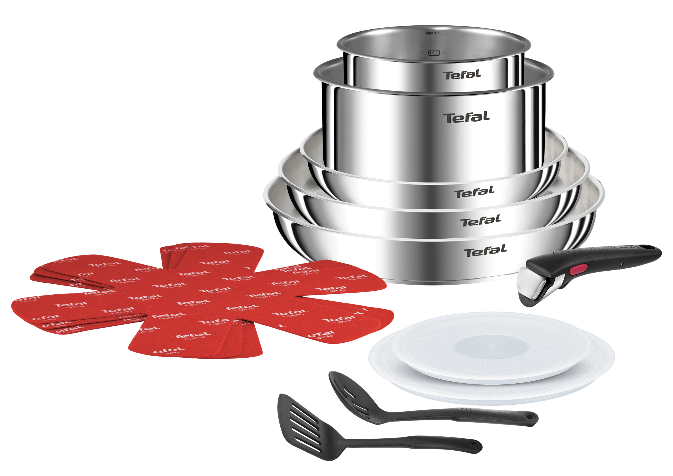INGENIO C’EST BIEN PLUS QU’UNE POÊLE : vous pourrez cuire sur la plaque de cuisson, gratiner vos recettes au four et conserver les restes au frigo CONTENU : Poêles 22/26/28 cm + Casseroles 16/20 cm + Couvercles hermétiques 16/20 cm + 5 accessoires (cuillère écumoire, spatule à angle, feutrine protège-poêles x3) + 1 poignée amovible POIGNEE AMOVIBLE ULTRA SECURISEE : La poignée amovible sûre et brevetée bénéficie d’une garantie de 10 ans*** GAIN DE PLACE : grâce à son empilabilité, Ingenio vous fait gagner de la place dans vos placards ACIER INOXYDABLE GARANTI 5 ANS : Garantissant des performances et une fiabilité durables, découvrez un produit de qualité supérieure avec un design robuste, conçu pour durer. TOUS FEUX DONT INDUCTION : Compatible gaz, électrique, vitrocéramique et induction INDUCTION INTEGRALE : Une base épaisse de diffusion de la chaleur pour des repas savoureux et des performances durables.