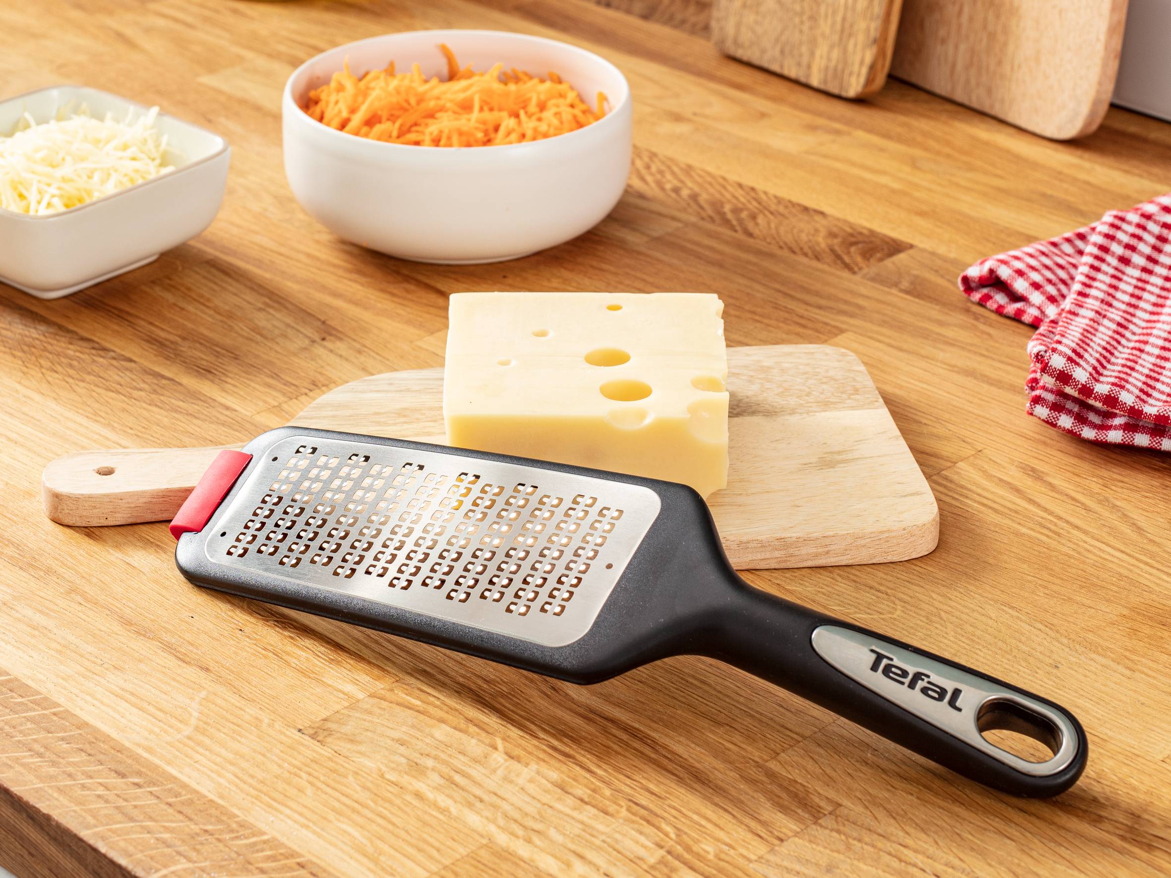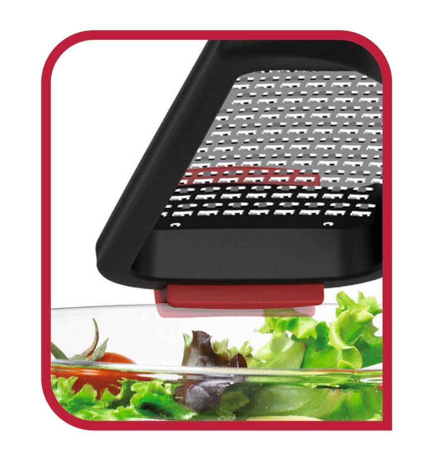 Les embouts en silicone antidérapants et les lames bidirectionnelles haute performance se combinent pour offrir une stabilité maximale et des résultats ultra-rapides La râpe en acier inoxydable est équipée d'un étui pour ranger les lames et assurer un rangement sécurisé pour toute la famille Ustensile de cuisine compatible lave-vaisselle pour un nettoyage facile et un confort exceptionnel au quotidien Produit conforme aux normes de qualité Tefal et soumis à de nombreux tests en laboratoire avant sa mise sur le marché