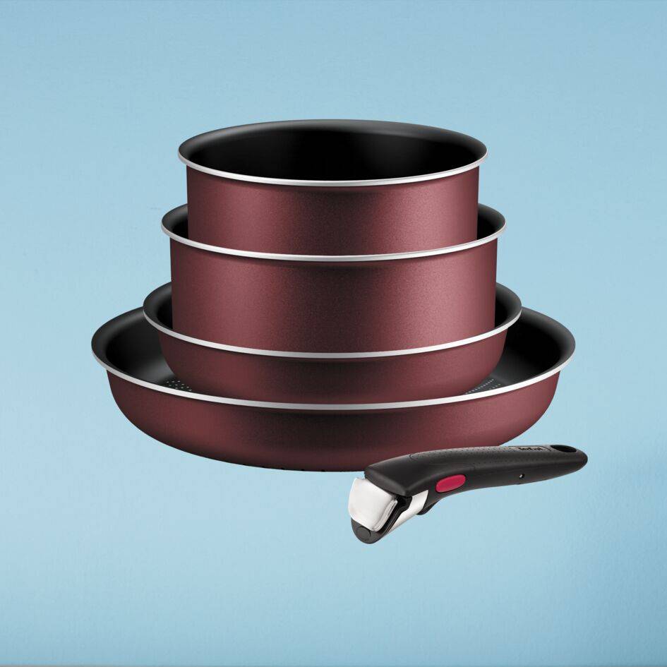 Nos ustensiles à poignée amovible offrent une expérience de cuisine plus intelligente au quotidien Lot 7 pièces essentiel : 2 poêles, 2 casseroles et une poignée amovible Nos produits innovants sont fabriqués en France avec le plus grand soin et des matériaux de haute qualité Les poêles induction Ingenio les plus légères de Tefal, jusqu'à 28 % plus légères* grâce à la nouvelle technologie Light Tech Revêtement antiadhésif résistant en titanium pour des performances exceptionnelles Une poignée amovible (vendue séparément) brevetée et sécurisée qui peut supporter jusqu'à 10 kg** et garantie 10 ans*** Revêtement intérieur et extérieur antiadhésif pour un nettoyage sans effort Cuisson rapide : 99 % des consommateurs affirment que la cuisson est plus rapide**** (compatible avec toutes les surfaces de cuisson, dont l'induction)