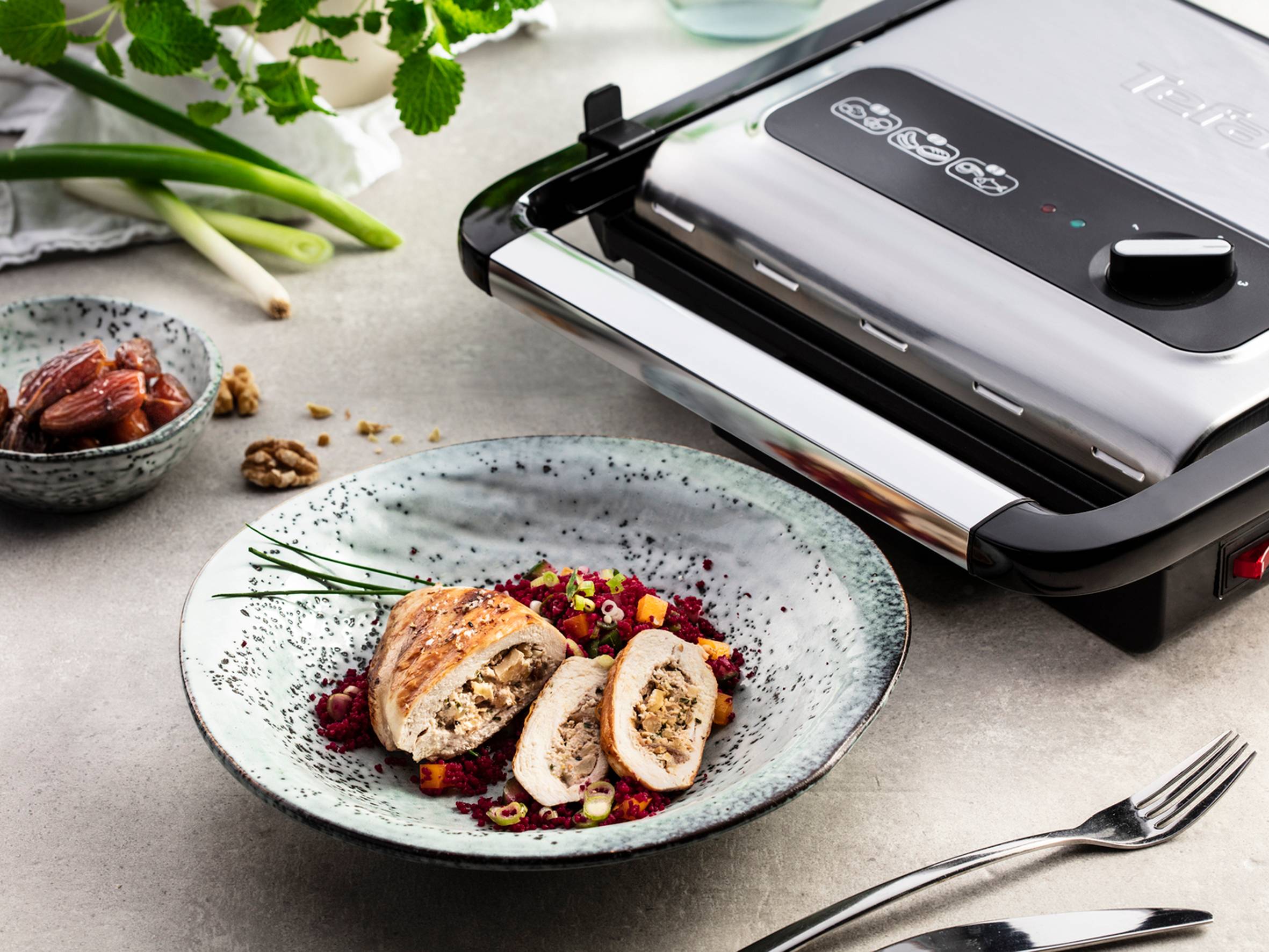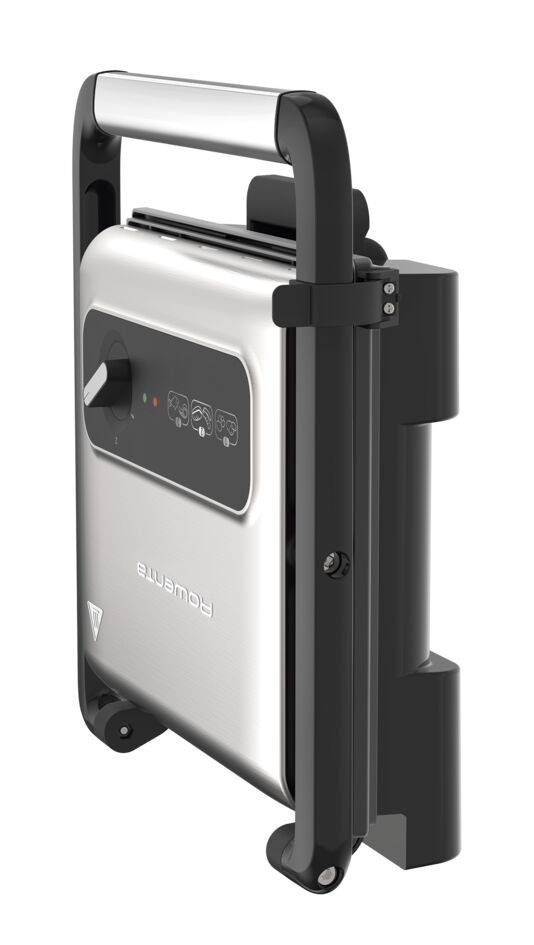 Gril d'intérieur avec une puissance de 2 000 W pour préparer de la viande et du poisson grillés et savoureux pour 6 personnes maximum Un gril multifonction avec une véritable poignée pour préparer des paninis dignes d’un restaurant Thermostat réglable pour de la viande, des légumes, des paninis, des saucisses et du poisson savoureux Plaques anti-adhésives pour une cuisson saine avec peu ou pas d’ajout de matière grasse Les plaques avec revêtement anti-adhésif sont faciles à nettoyer, et le bac de récupération du jus de cuisson et des graisses est compatible lave-vaisselle Rangement compact et vertical avec un système de verrouillage sécurisé pour gagner de l'espace