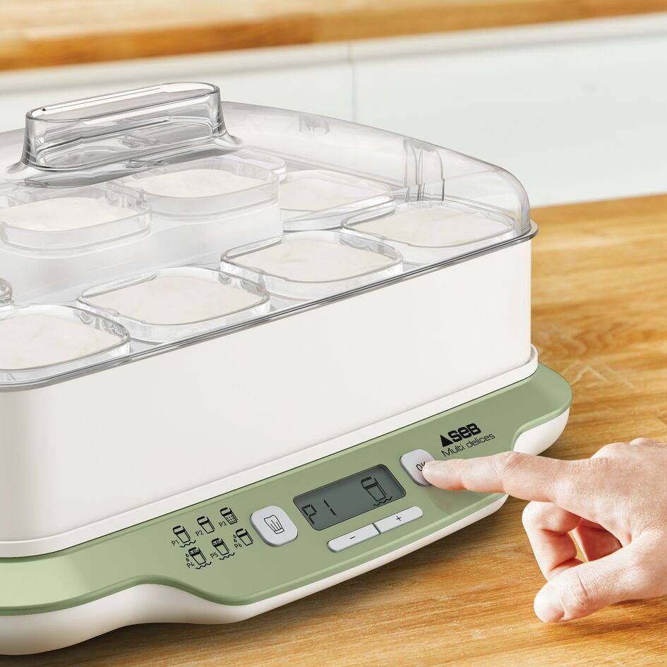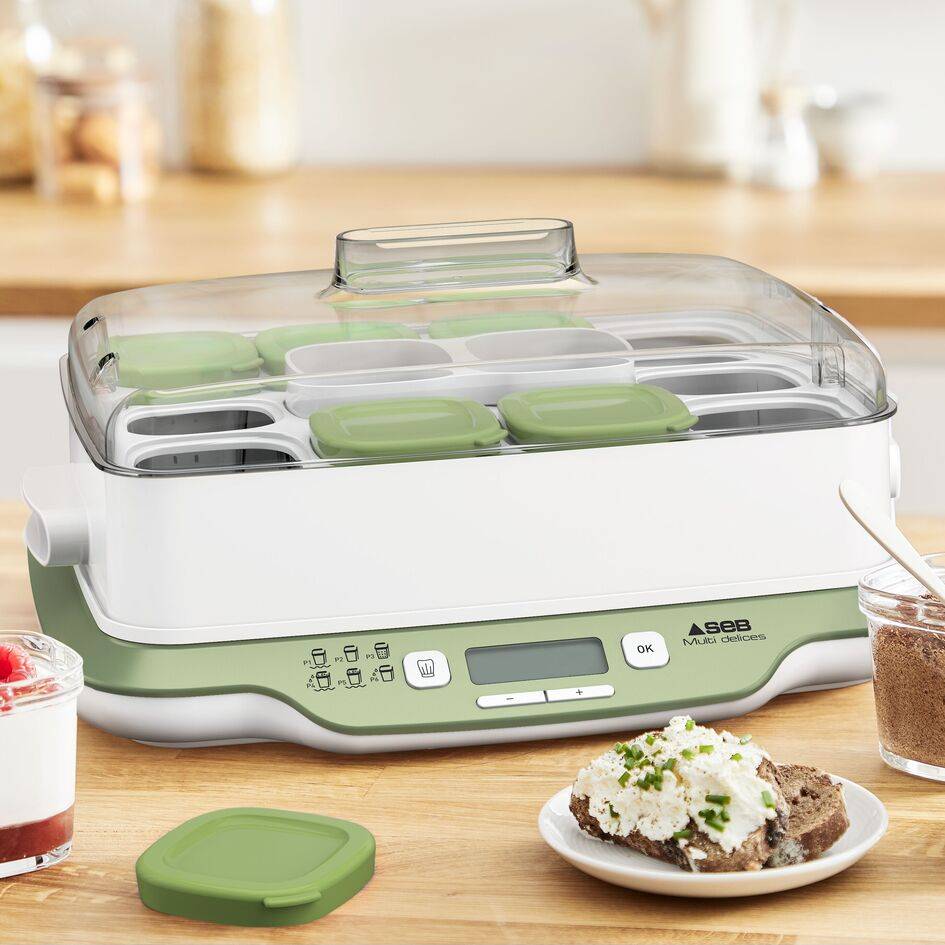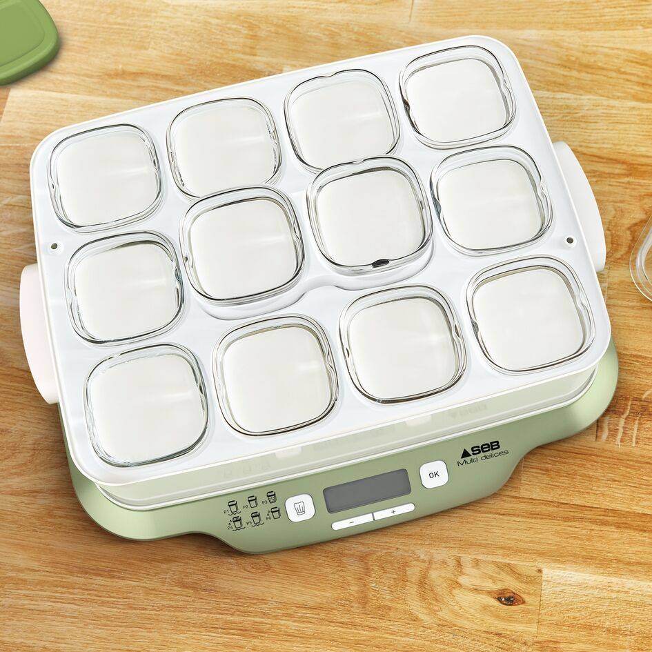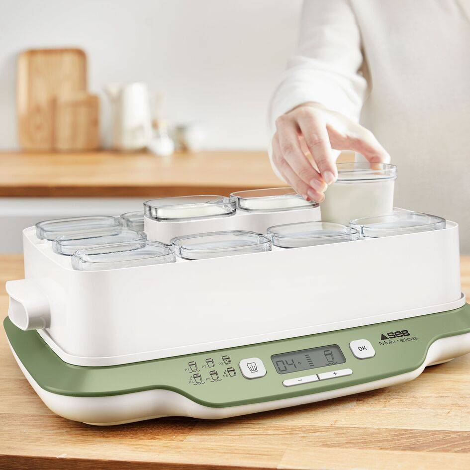 RÉSULTATS RAPIDES : : réalisez vos yaourts en 4 heures seulement avec le programme express (mode express P1), ainsi que de délicieux desserts en 30 à 45 minutes. CAPACITÉ FAMILIALE : douze pots en verre de 140 ml permettent de préparer des yaourts et des desserts pour une semaine POLYVALENTE : 6 modes automatiques : Yaourts Express - Yaourts - Fromages blancs - Desserts lactés - Desserts moelleux - Desserts végétaux. FACILITÉ D'UTILISATION : 6 programmes automatiques avec des températures et durées prédéfinies, un écran LCD pour une surveillance facile, ainsi qu'une louche et une cuillère doseuse pour une préparation simplifiée FABRIQUER EN FRANCE ET RÉPARABILITÉ 15 ANS : réparable au juste prix - 15 ans. Conçu pour être réparé. Mise à disposition rapide des pièces à coût limité pendant 15 ans et plus 6200 réparateurs agréés mondiaux NETTOYAGE FACILE : tous les éléments de la yaourtière passent au lave-vaisselle (sauf la base du produit) pour un nettoyage sans effort ÉGOUTTAGE BREVETÉ : avec son système d'égouttage breveté, vos recettes de fromages blancs sont à votre goût : tournez simplement l'égouttoir d'un quart de tour dans son pot. SERENITE TOTALE : yaourtière avec arrêt automatique, produit 100 % sans BPA.