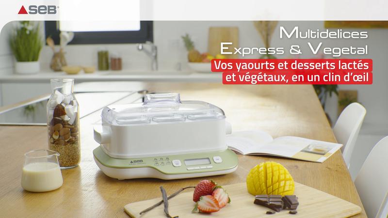 Multidelices Express & Végétal est la yaourtière qui saura satisfaire les goûts de chacun ! Obtenez des résultats rapides et faciles et réalisez un large éventail de délicieuses recettes : yaourts, fromages blancs, desserts avec ou sans produits laitiers, ou encore des recettes végétaliennes. Préparez des yaourts maison naturels en deux fois moins de temps*, ainsi que de succulentes recettes végétales en utilisant des boissons à base d'amande, de soja ou d'avoine. Le tout, dans un format compact, facile à ranger ou à garder sur votre plan de travail.