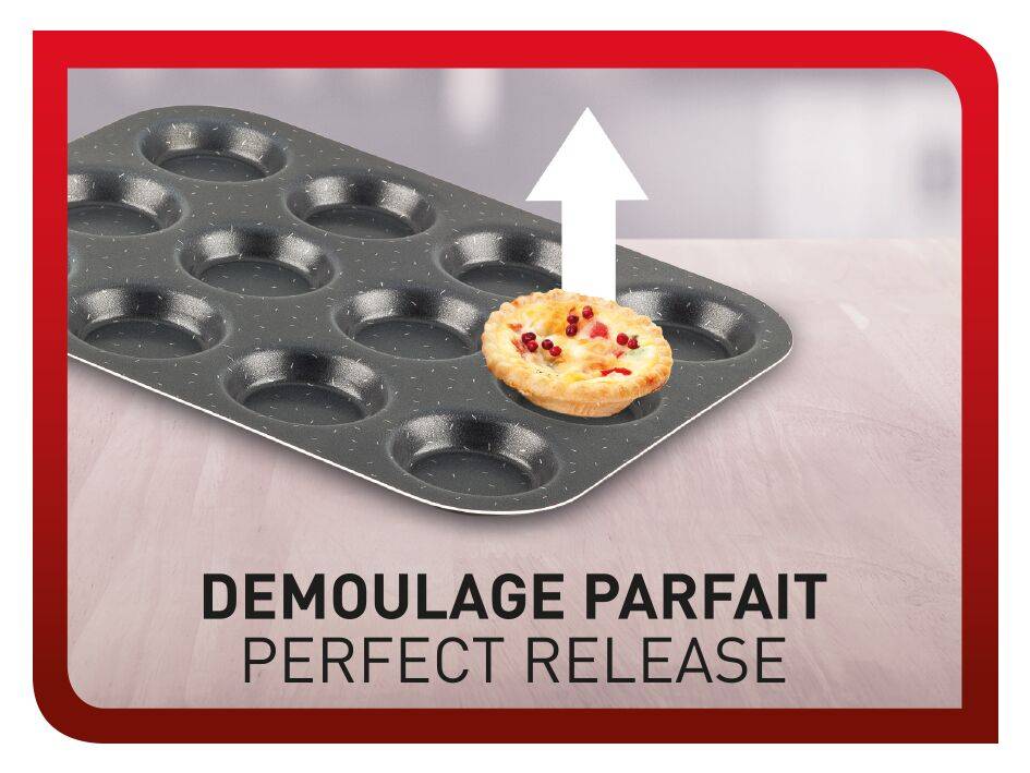 Un moule à 12 mini-tartelettes doté d’un revêtement antiadhésif d’exception pour un démoulage facile et une cuisson parfaite Confort exceptionnel et contrôle total pour un démoulage parfait de tous vos gâteaux préférés Un moule à tartelettes robuste conçu avec des matériaux de haute qualité pour des performances durables Revêtement antiadhésif haute performance pour un nettoyage facile, idéal pour une utilisation fréquente