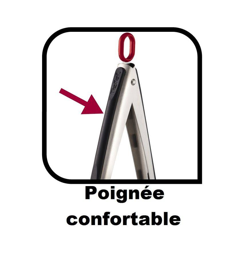 La ligne de produits Tefal Ingenio Inox est composée d'ustensiles polyvalents qui vous apporteront performance et design innovant. La pince à aliments est idéale pour cuisiner, tourner et servir des aliments chauds ou froids. Son anneau de sécurité en silicone empêche l'ustensile de glisser dans le récipient et protège le manche des hautes températures de la casserole ou de la poêle