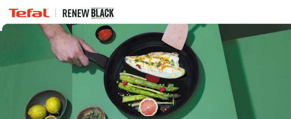Mieux cuisiner avec moins d'impact ! Renew, c'est une toute nouvelle façon de cuisiner éco-conçue, qui allie l'innovation à une empreinte environnementale réduite. Découvrez une glisse parfaite grâce à un revêtement antiadhésif en céramique nouvelle génération fait pour durer au fil des jours et des repas. Compatible avec toutes les plaques de cuisson, l'indicateur de chaleur Thermo-Signal assure une saisie parfaite et délicieuse à chaque fois.