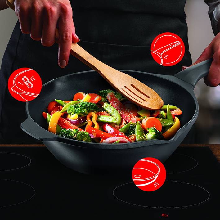 Ne faites jamais de compromis sur les ustensiles de cuisine : avec Robusto, une forme indispensable, une conception robuste, un revêtement antiadhésif durable et des poignées renforcées se conjuguent pour offrir une poêle à la hauteur d'une cuisine quotidienne intensive. Idéale pour inspirer des repas allant du pad thaï au curry fait maison, en passant par le poulet laqué au miso, la longe de porc croustillante en croûte de panko et bien d'autres recettes.
