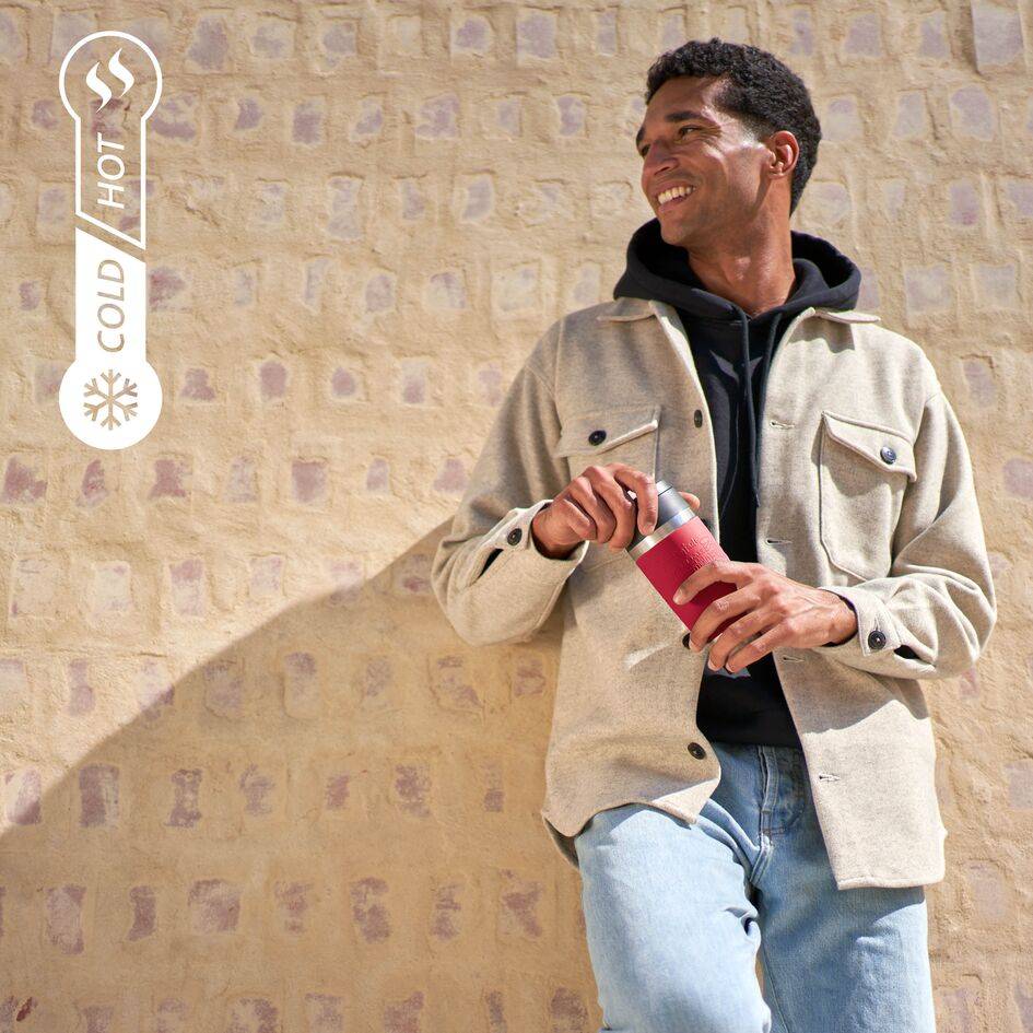 Équipé d'un couvercle à vis confortable qui facilite le remplissage, découvrez le mug de voyage idéal pour un usage quotidien - pour savourer toutes vos boissons préférées où que vous alliez. Une boisson au bout des doigts : le couvercle Quick Press avec valve de pression ne pourrait pas être plus facile à ouvrir - pour boire rapidement quand vous en avez besoin Le manchon doux au toucher, offre une prise en main parfaite sans glisser, et présente un design tendance disponible dans une variété de couleurs, et en deux tailles différentes pour s'adapter à tous les styles Fabriqué en acier inoxydable durable, notre mug de voyage est conçu pour durer longtemps - ce qui contribue à réduire les déchets 100% étanche pour une totale tranquillité d'esprit en déplacement - conçu pour s'insérer facilement dans les sacs et les porte-gobelets des voitures Le corps en acier inoxydable est parfait pour toutes sortes de boissons, gardant les boissons chaudes jusqu'à 4 heures et les boissons froides jusqu'à 8 heures Le couvercle à 360° permet d'utiliser le mug facilement et de boire sous n'importe quel angle. Conçu pour être lavé au lave-vaisselle, le couvercle se démonte facilement en deux parties pour une hygiène parfaite et un nettoyage sans effort