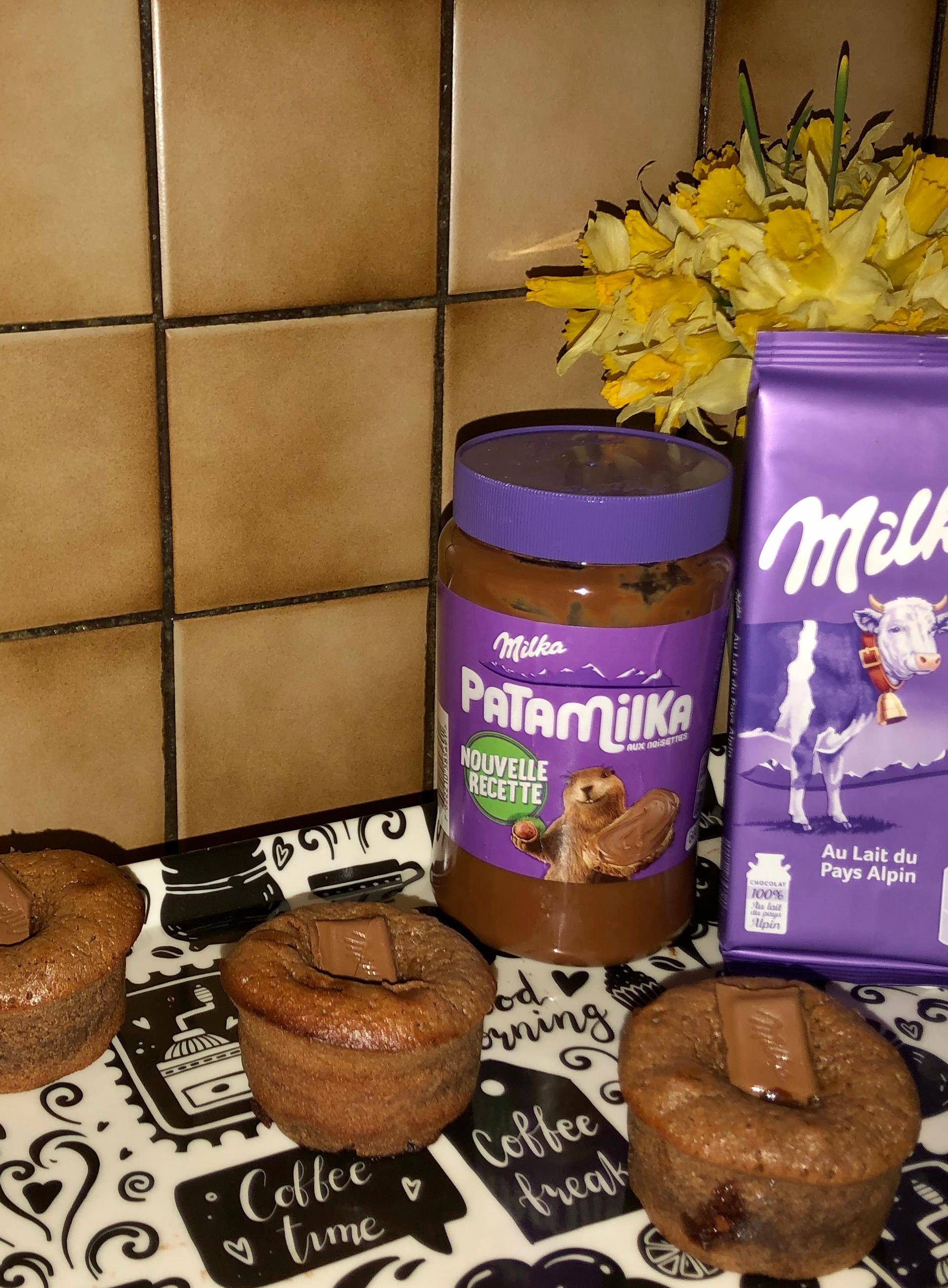 Répartir dans les moules en ajoutant 1 petit carré de caramel