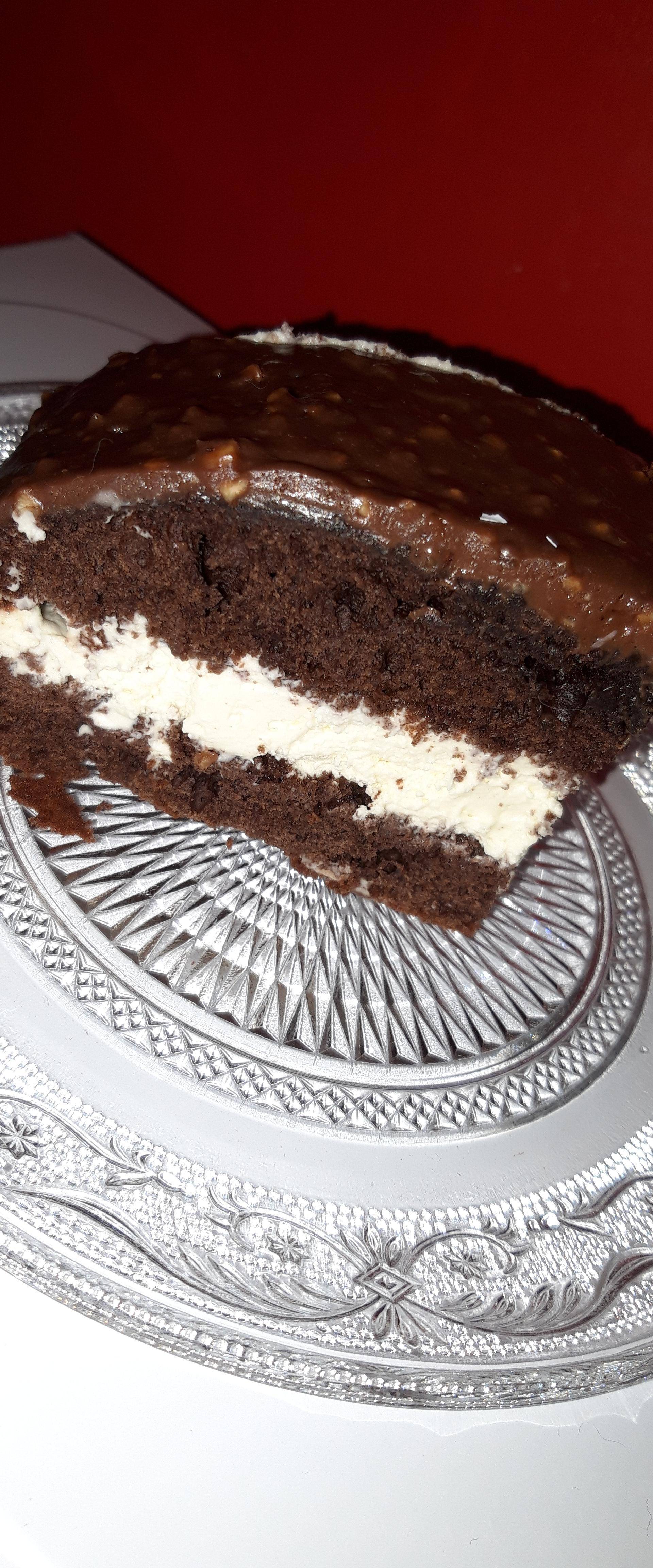 Gâteau chocolat farci au mascarpone avec nappage chocolat et pralin