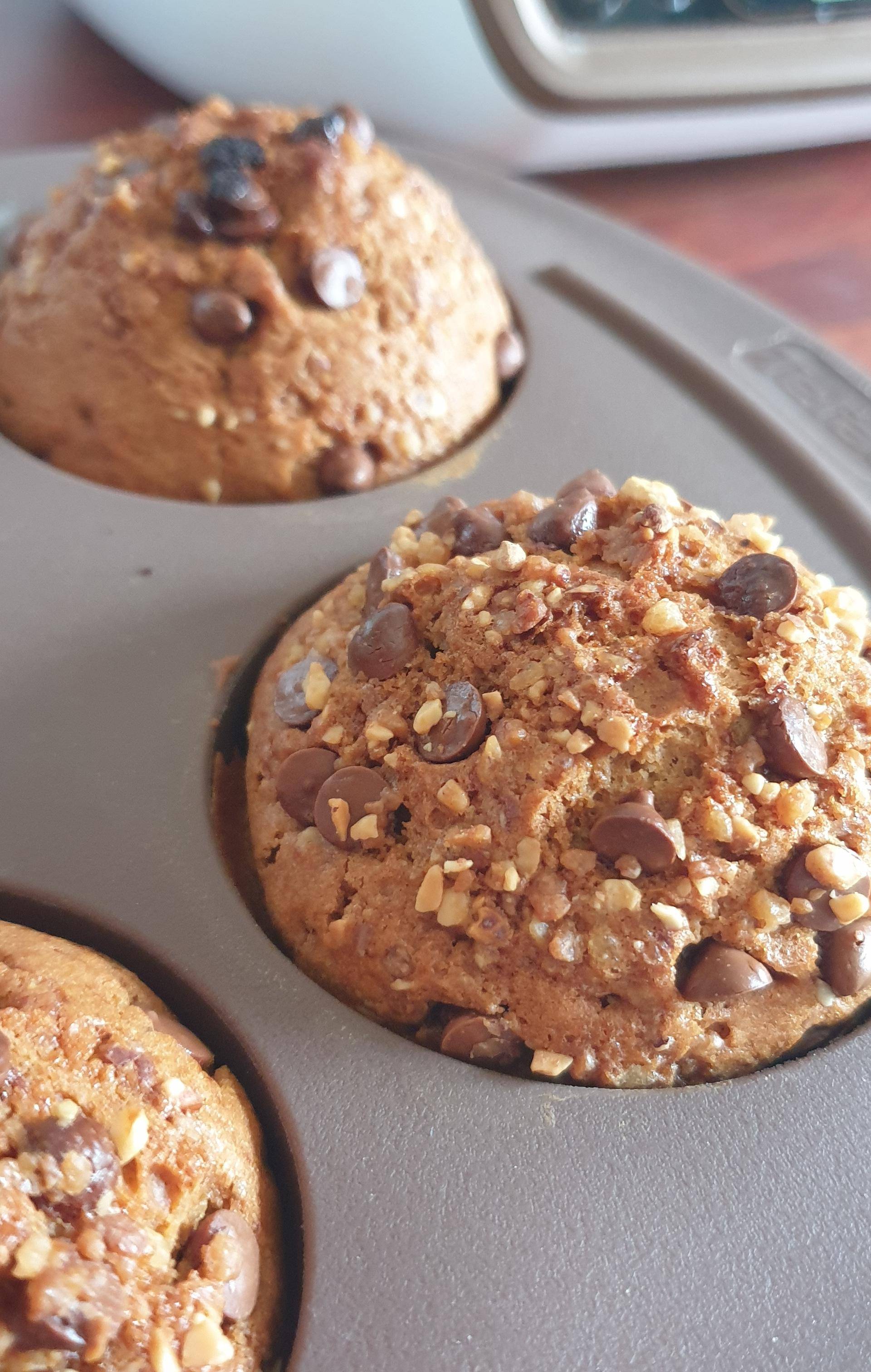 Verser la pâte en 2 étapes dans le moule à muffins. Mettre la moitié de la pâte, insérer un carré de chocolat praliné et recouvrir de pâte. Le moule doit être rempli aux 3/4. Mettre les pepites de chocolat et le pralin en décoration. Faites cuire. Laisser refroidir avant de démouler.